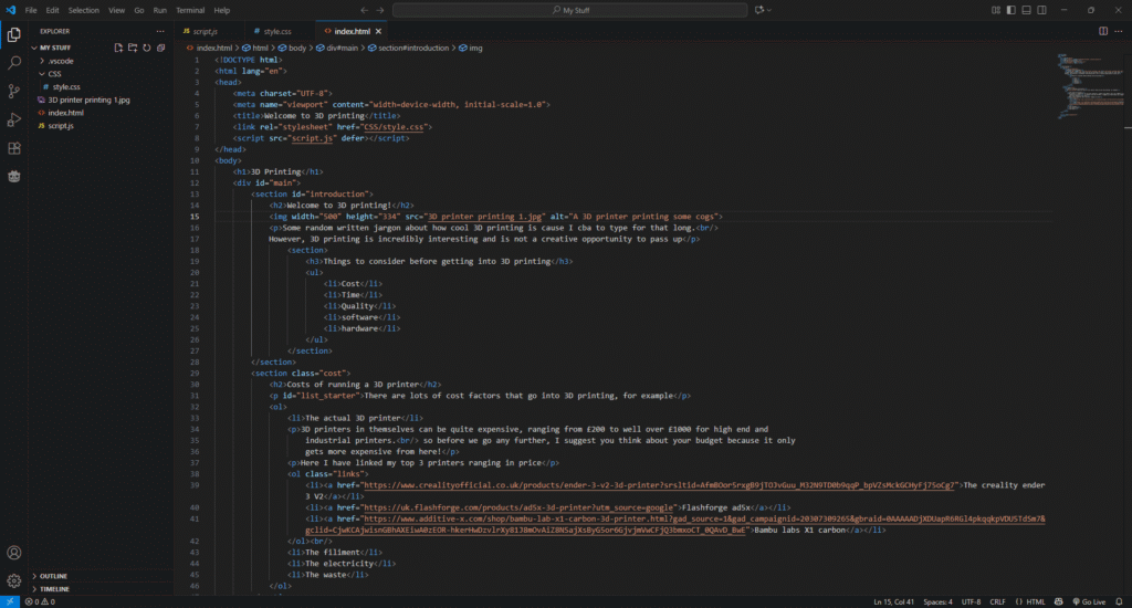 Week 2 was out first full-on week where we looked at using github and more HTML and CSS, learning about hierarchies and formatting.